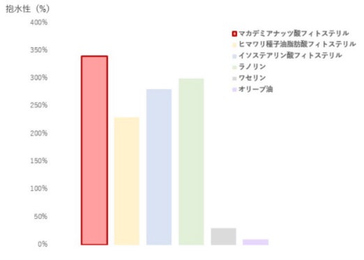 他の一般的な保湿成分と比較し高い抱水性が特徴で、肌に驚きの潤い感を与えます。