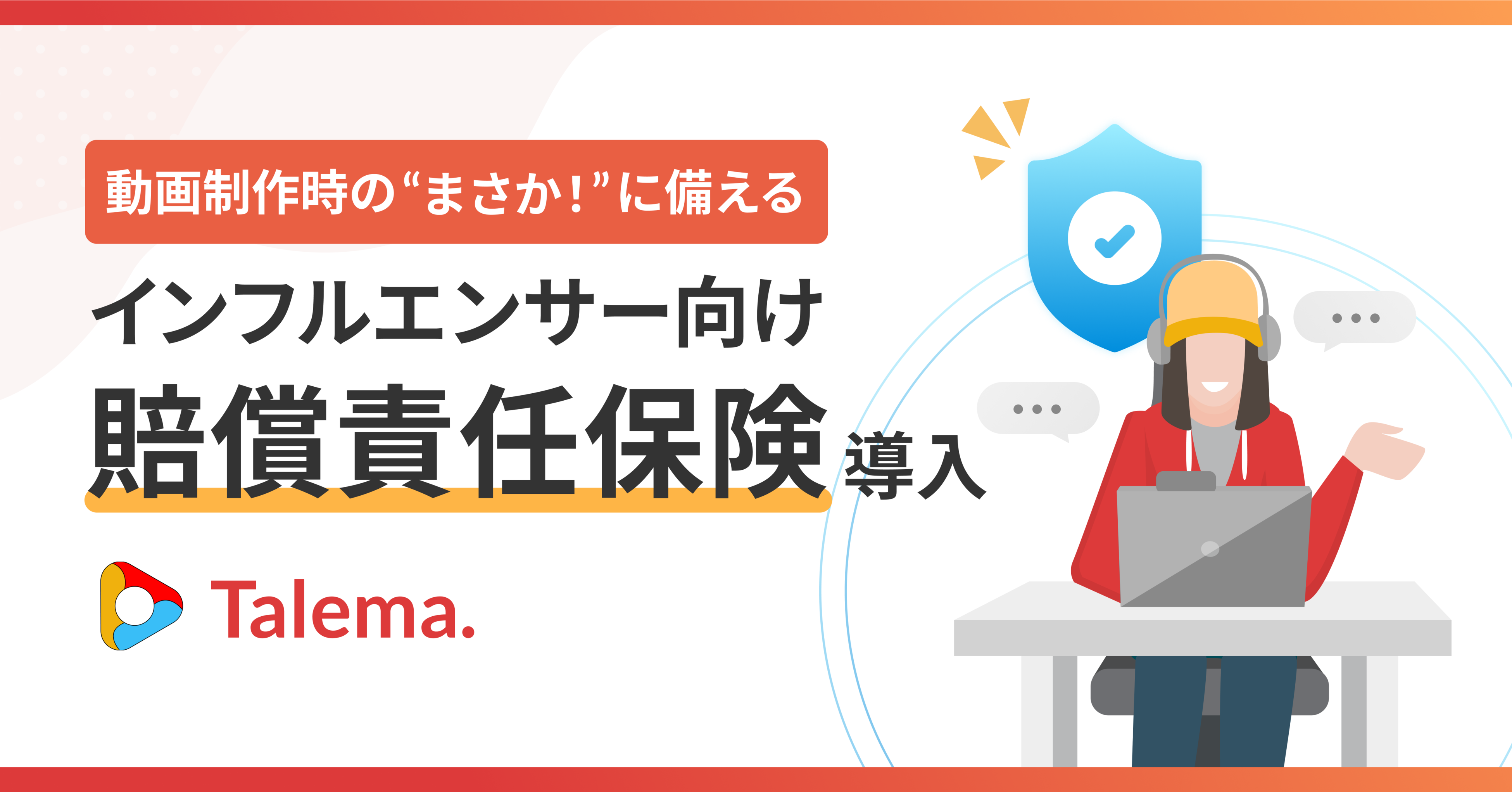 - 企業もYouTuberも安心して利用できるTalema.専用保険を導入/安心・安全に案件を進行可能