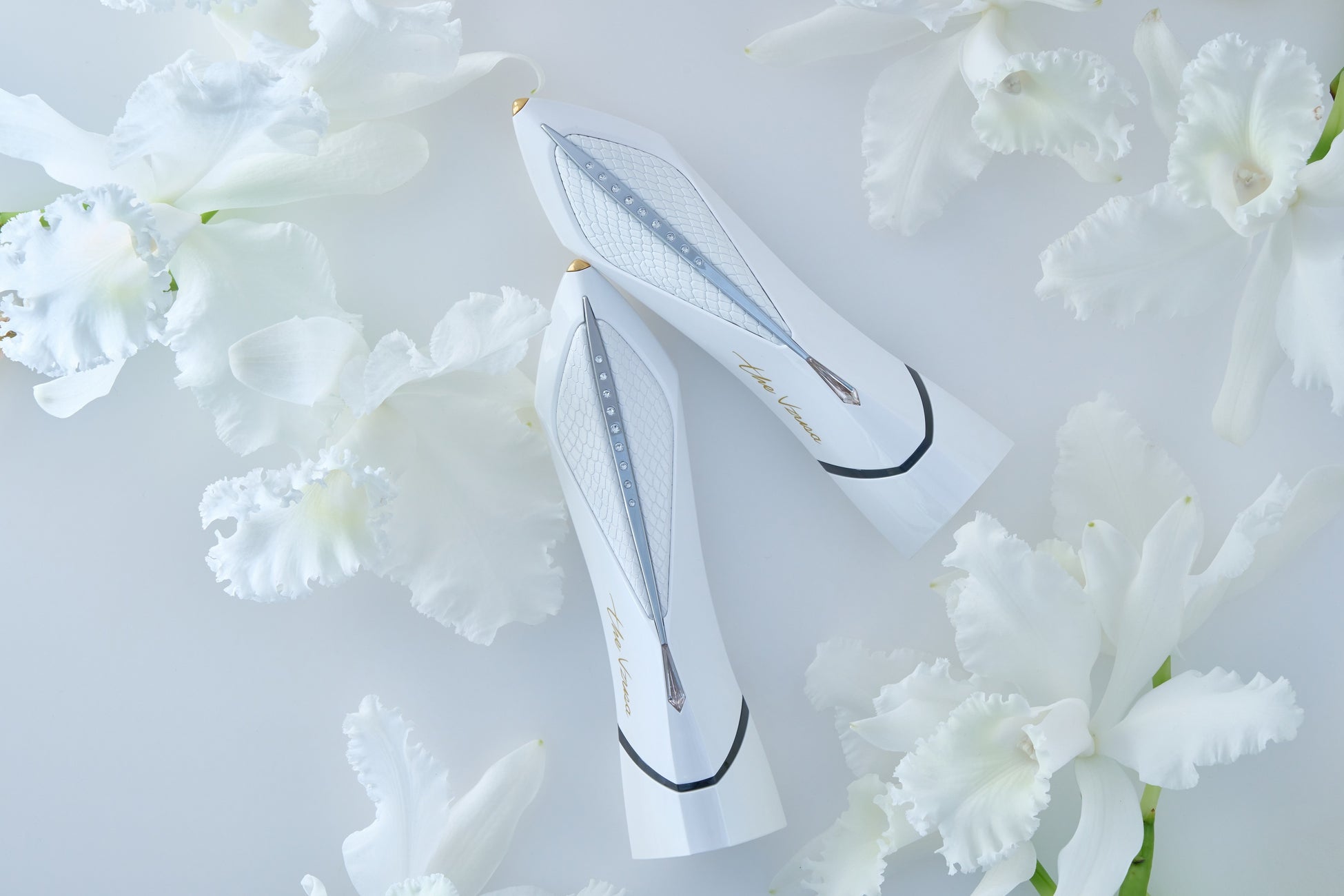 パイソン柄とスワロフスキーをあしらい、個性が際立つ魅惑的なデザイン:トリートメント後も自立型カバーで、絵になる美顔器としていつでも貴方の側に美しくスタンバイ。お肌に触れる素子は24金のコーティングで、お肌への親和性が高い素材にこだわり、目元やシワなど細かい部分によりフィットする形状に仕上げました。NFCタグシステムを搭載し、オーナー様だけのシリアルNo.をいつでもご確認いただけます。