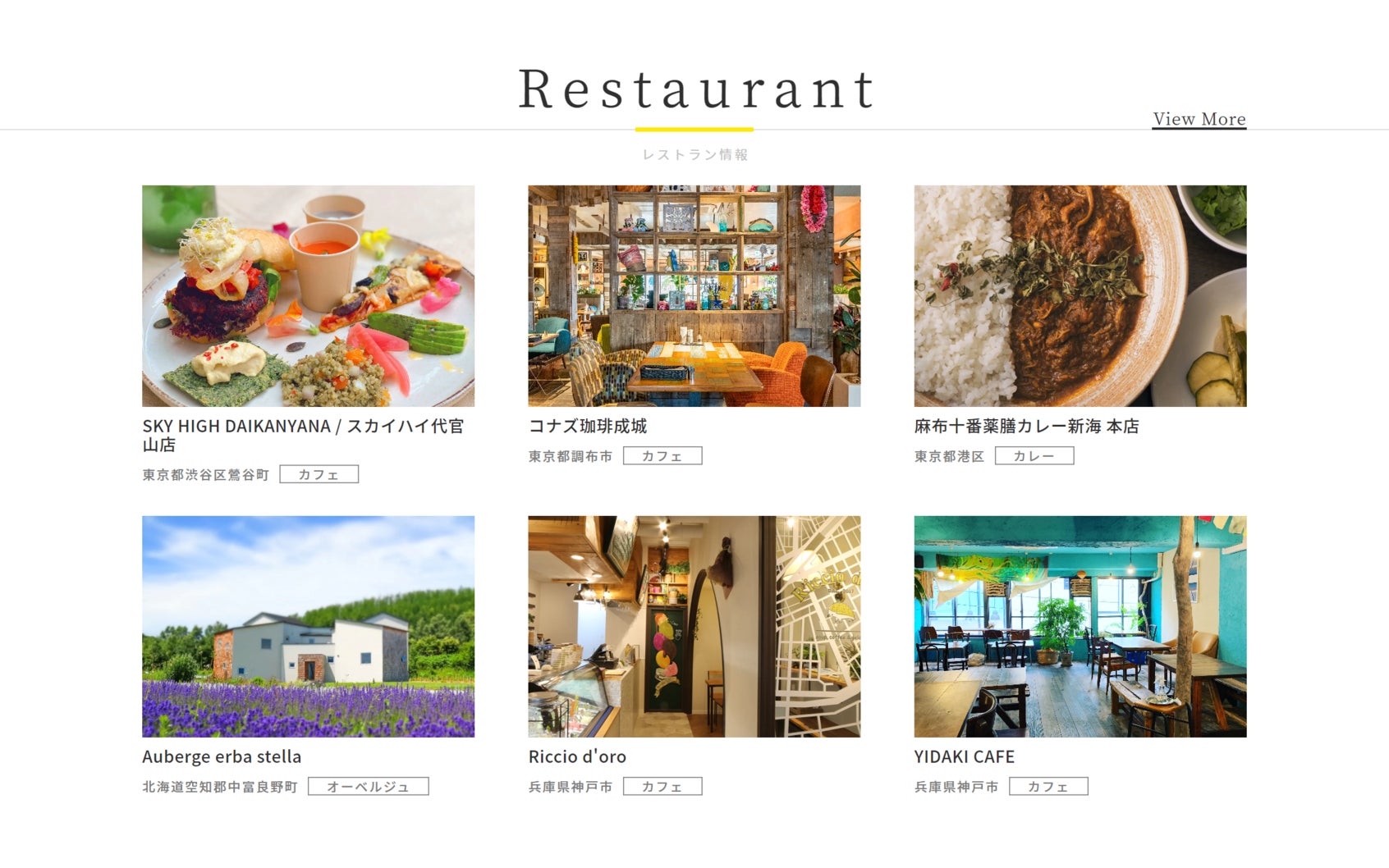 ヴィーガン専門店やヴィーガンオプション対応可のカフェ&レストラン情報をおすすめメニューと共にお届けしています。9月末時点で、130件の情報を掲載しておりますが、今後は全国的にお店の情報を掲載して参りますので、ぜひ多くのレストラン・カフェを運営されている方々からの情報提供をお待ちしております。