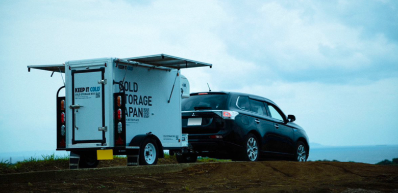 普通乗用車でもけん引できる小型の冷蔵・冷凍庫に、太陽光発電を搭載。“自立型ゼロ・エネルギー”の小型コールドストレージ稼働運用に世界で初めて成功しました。(2023年4月時点)
