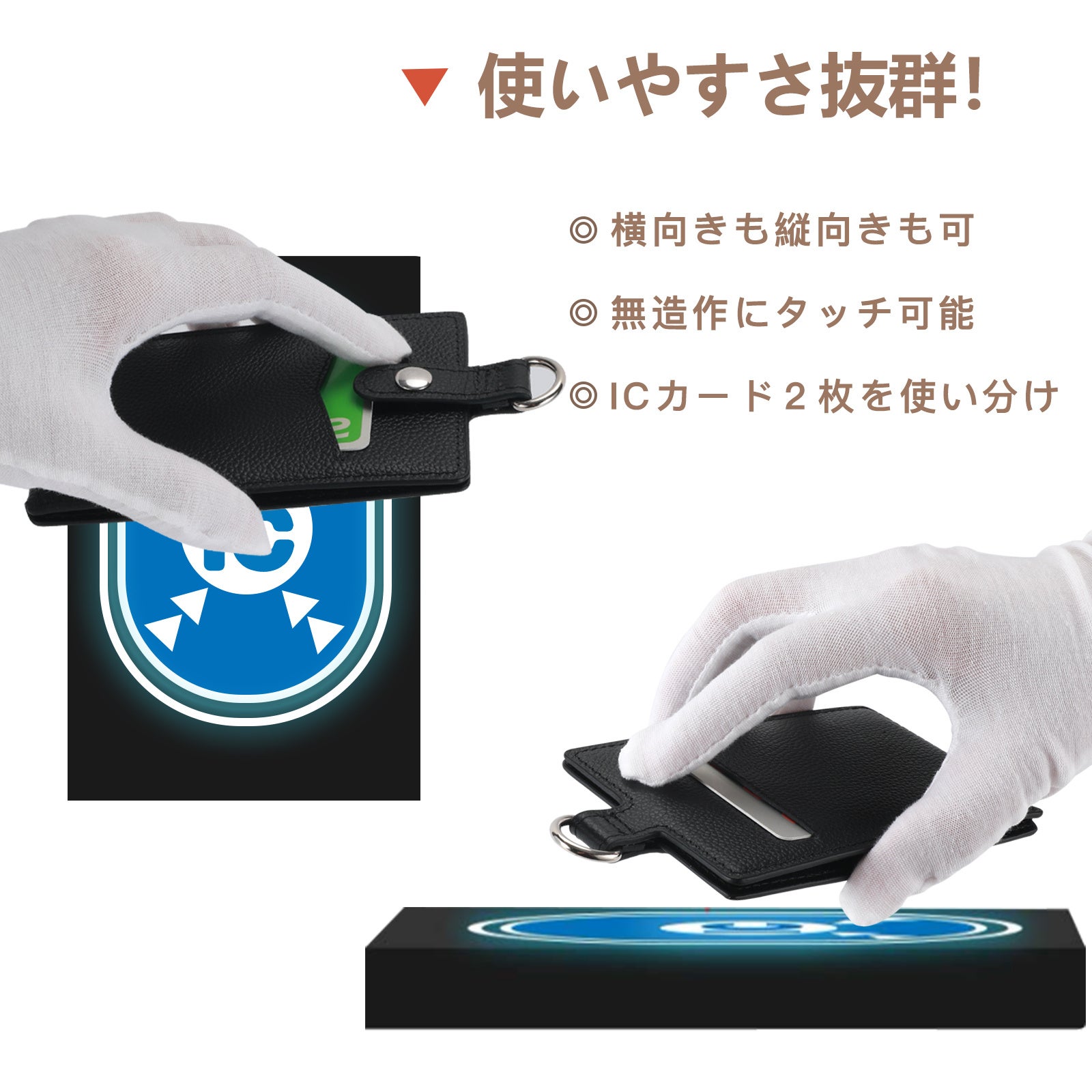 「すいすいパスケース」は、電磁波遮断材を採用しており、交通系ICカード2枚が互いに電磁波を干渉しにくくように設計されています。プライベート用、会社用などの複数カードを持っている方々にとって、便利性が高いです。