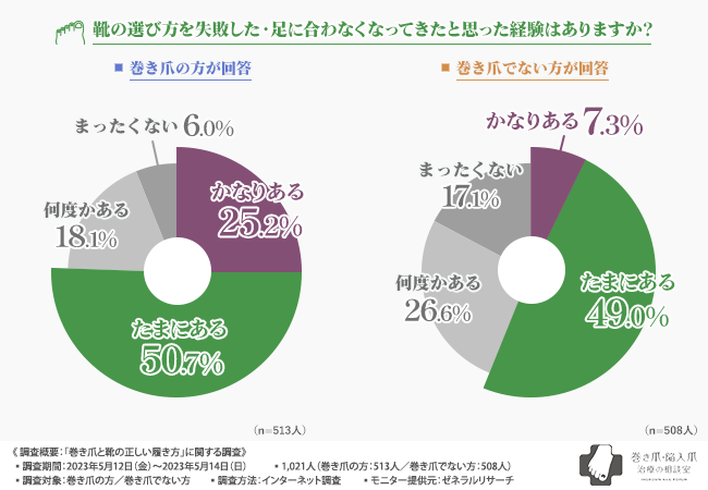 ・靴の選び方を失敗した経験のある方は巻き爪の方が勝る結果に