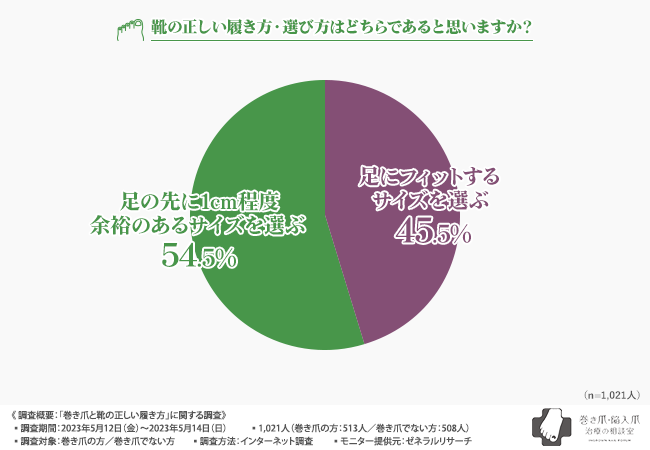 - 実は、靴の選び方を間違っている人は多い!?巻き爪でない人でも、正しい選び方ができているのは54.5%