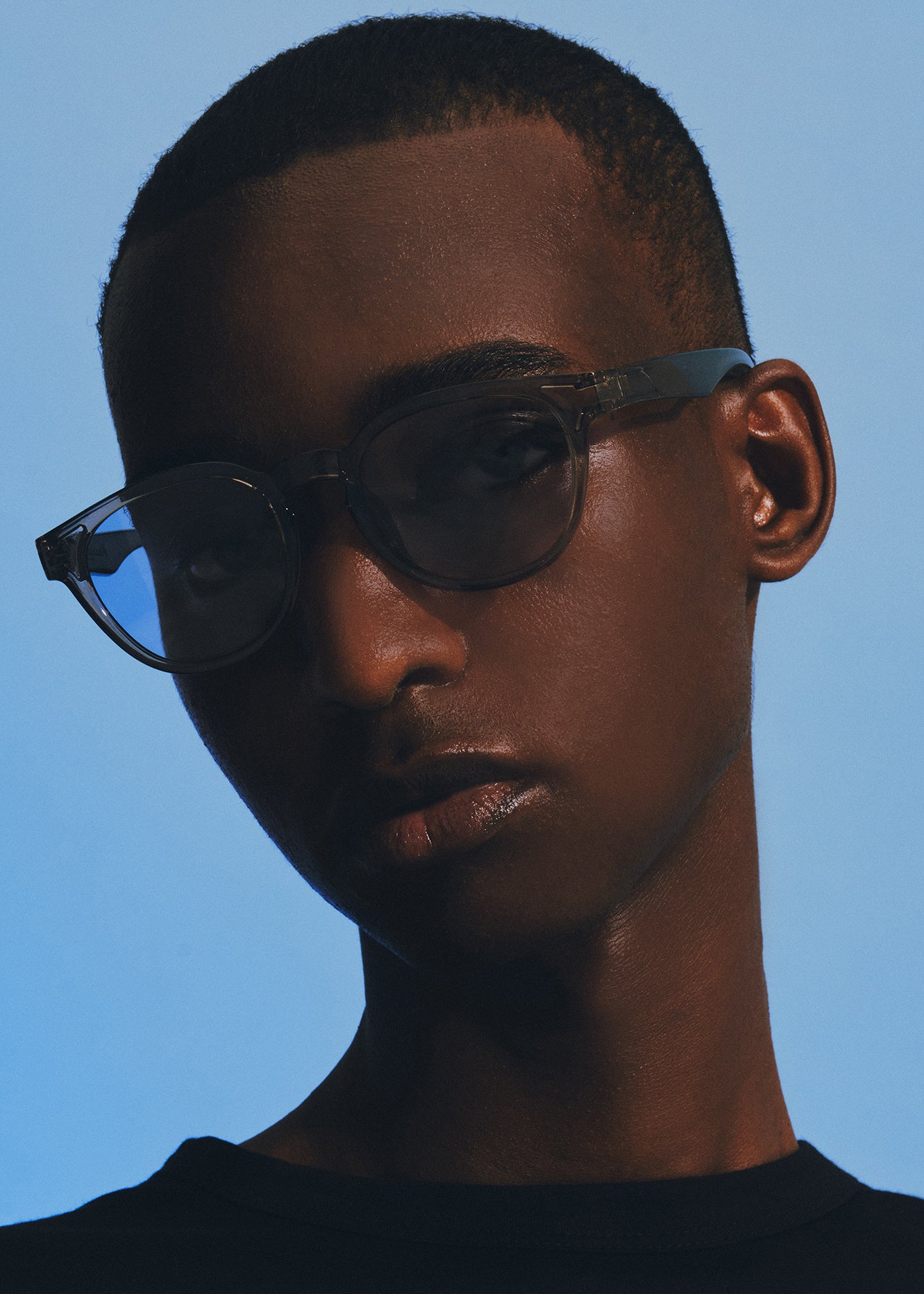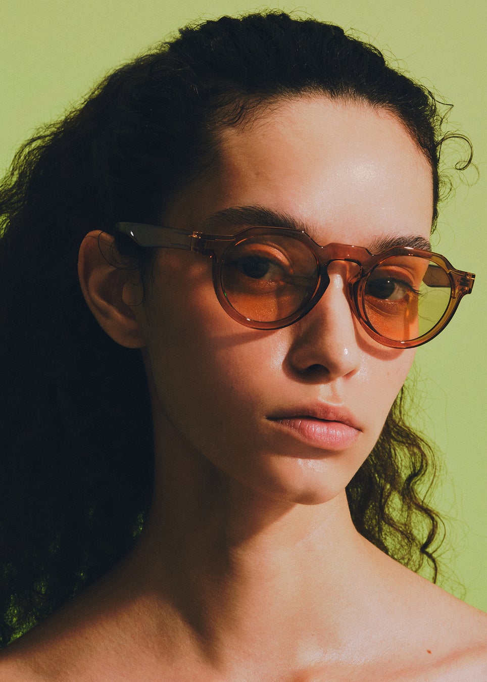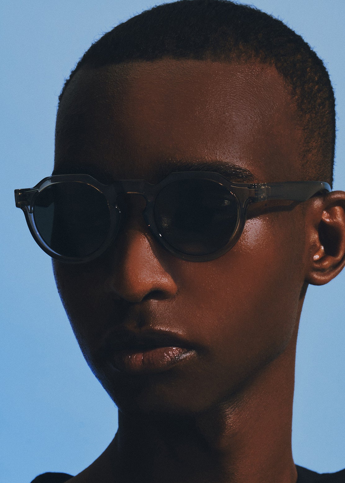 1950〜60年代のフランスのヴィンテージクラウンパントフレームをベースに再構築したモデル。曲線と直線でデザイン されるリムは、太陽が昇る⽔平線をイメージしています。 クラシックになり過ぎないようブリッジ幅にはゆとりを持た せ、⽇本⼈の⽬⿐バランスにも相性良くデザインしています。