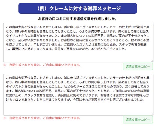 美容サロン専用AI活用口コミ作成支援サービス「レビューアンサー」に新機能
