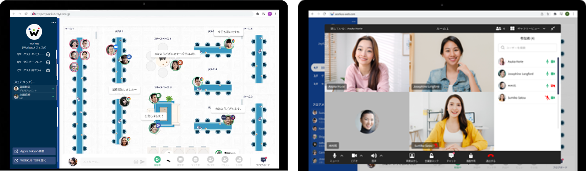 ・オンラインオフィスを通じて、どこにいても同じ空間にいるような感覚でコミュニケーションが可能になります。