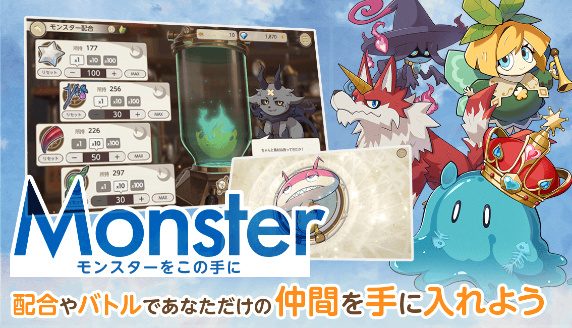 モンスター配合で新たな仲間をゲットし、モンスター同士の特性を継承!