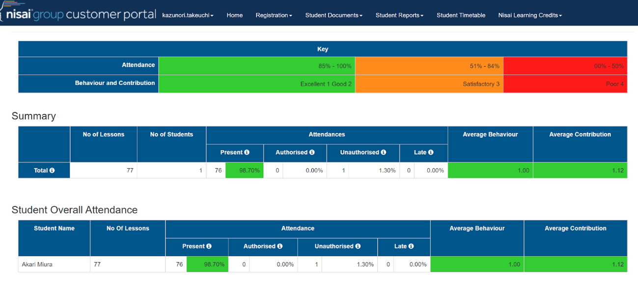 担当者は学習者の現在の習熟度や出席率も全て把握できる。
