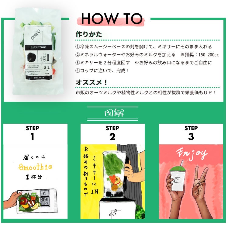 新パッケージでリニューアル!お客様からの声を反映し、従来サイズの2/3の量"ミニパック"を新発売!冷凍スムージーベース定期便に新プランも登場|馳走-CHISO-
