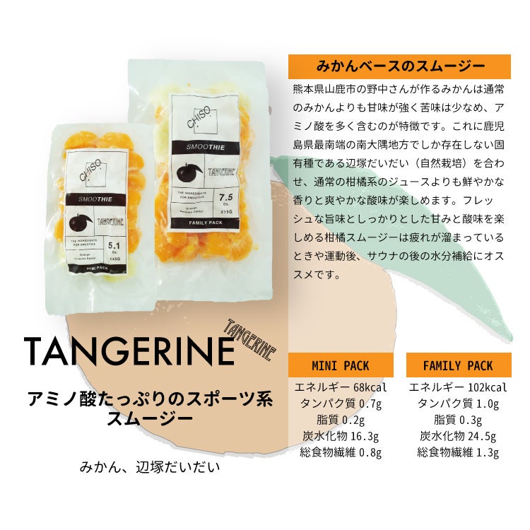 CHISO-馳走-スムージー定期便に新たなフレーバー"TANGERINE"が仲間入り
