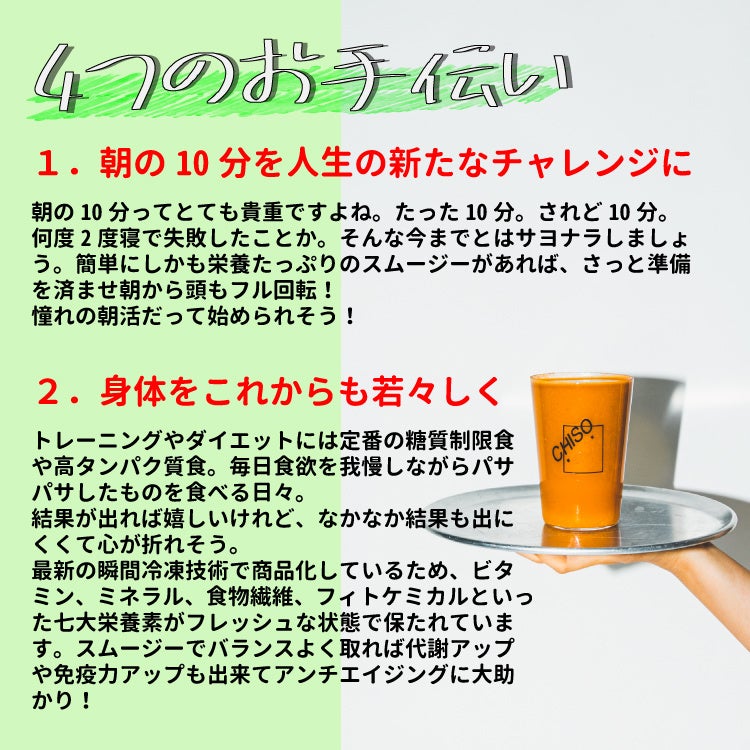 ▼▼▼CHISO-馳走-スムージー 一般発売までのプロセスはコチラ▼▼▼
