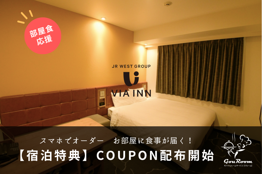 株式会社JR西日本ヴィアイン(兵庫県尼崎市)が運営するビジネスホテル、ヴィアイン心斎橋・ヴィアイン心斎橋四ツ橋にて株式会社HiNeLi(大阪府大阪市、代表取締役:中西訓生)が開発・提供するモバイルルームサービス「GouRoom」が導入されました。3月7日(月)〜3月31日(木)宿泊特典として注文時に割引を受けられるクーポンの配布を実施します。