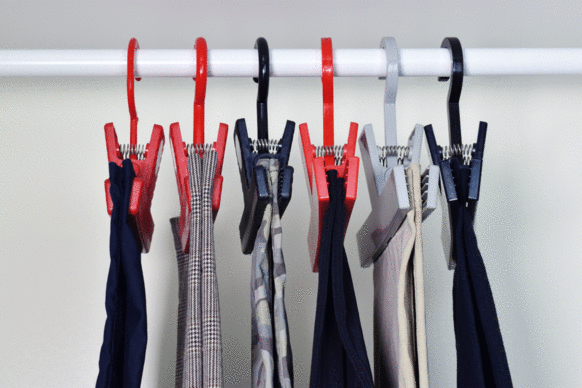 その用途はパンツだけではありません。スカートやTシャツ、マフラーや帽子など、挟めるものは何にでも使えます。さらに、前方のフックは連結するためだけでなく、ベルトなどの小物も掛けられるので、インドアはもちろんのこと、アウトドアでも、幅広いシーンで活躍します!