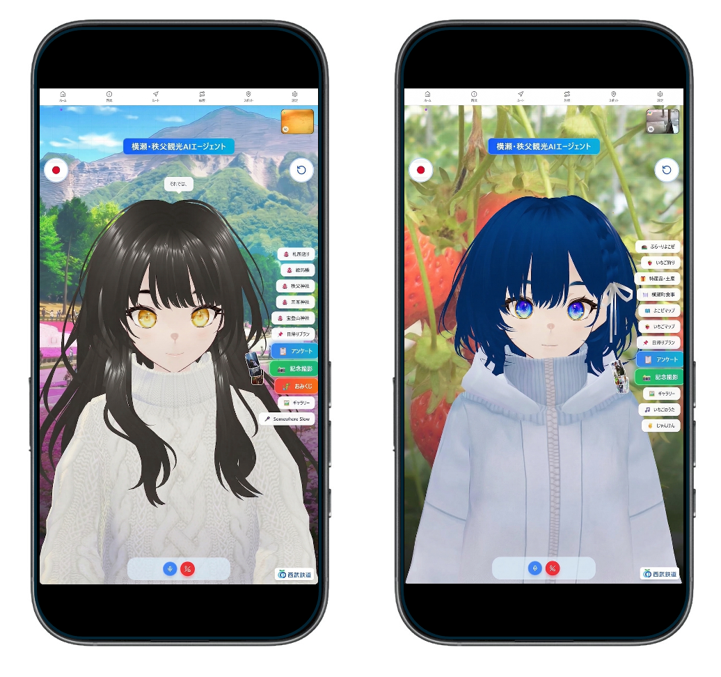 芦ヶ久保駅に続き、2026年3月11日から横瀬駅に観光AIエージェント「アリス(妹)」、4月4日から西武秩父駅に「アリサ(姉)」を設置。二人は57ヵ国語以上の多言語で、サイネージにて会話をするだけでなく、スマホで24時間使用できるQRコードを発行して旅の先々で観光案内を続けます。「おみくじ」や「写真撮影」などエンターテインメント性を高める新機能も搭載しており、秩父の魅力発信を強化しています。