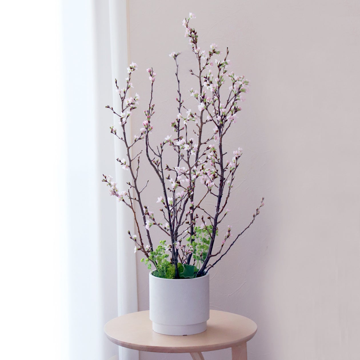 蕾~少し花が咲いた状態でお届け。春に向け満開になる桜をリビングで楽しめます。
