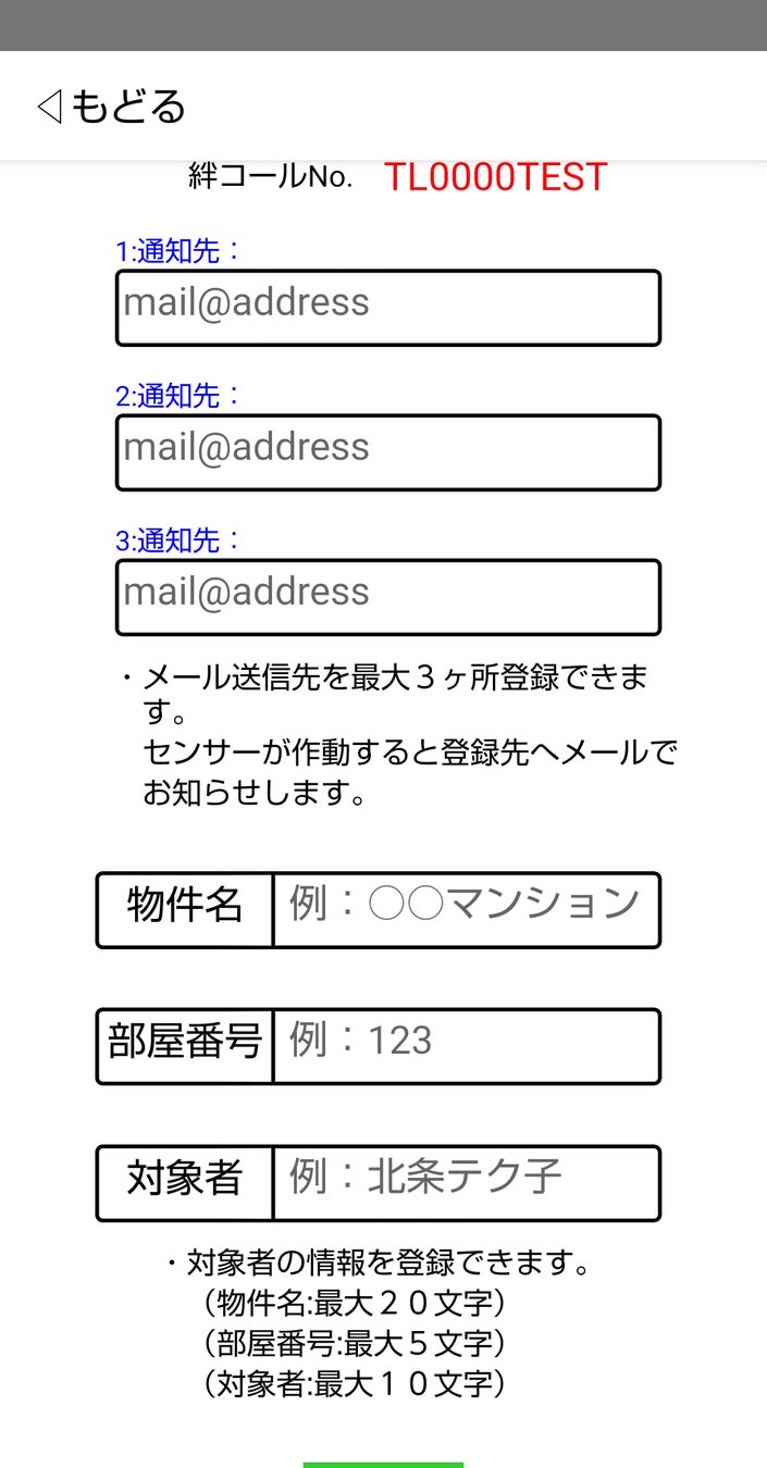 ン名や部屋番号、対象者名の登録が行えます。