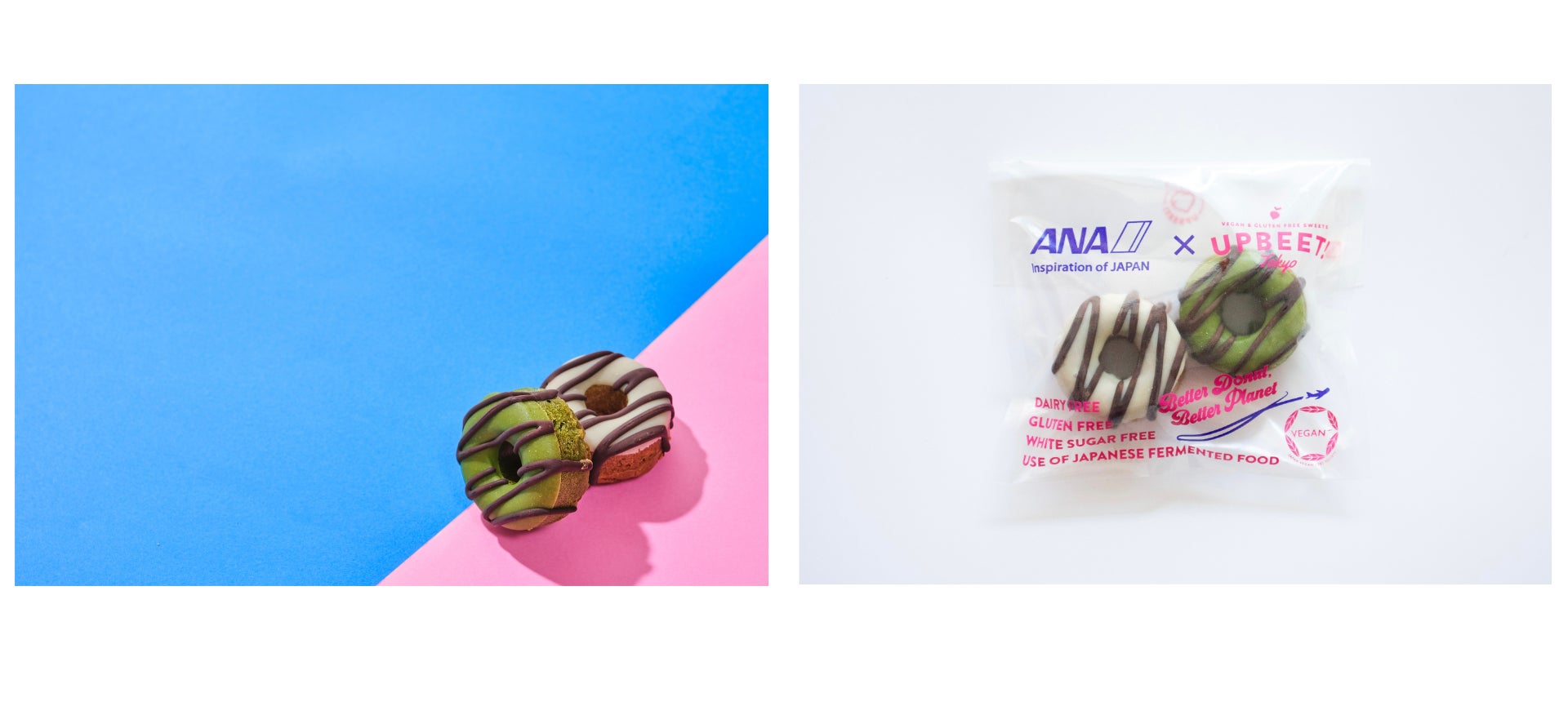 この度、ヴィーガンやベジタリアンのお客さまにも、他のお客さまと同じように食を楽しんでいただきたいという想いが重なり、『ANA × UPBEET!ドーナツ』を両社で開発しました。