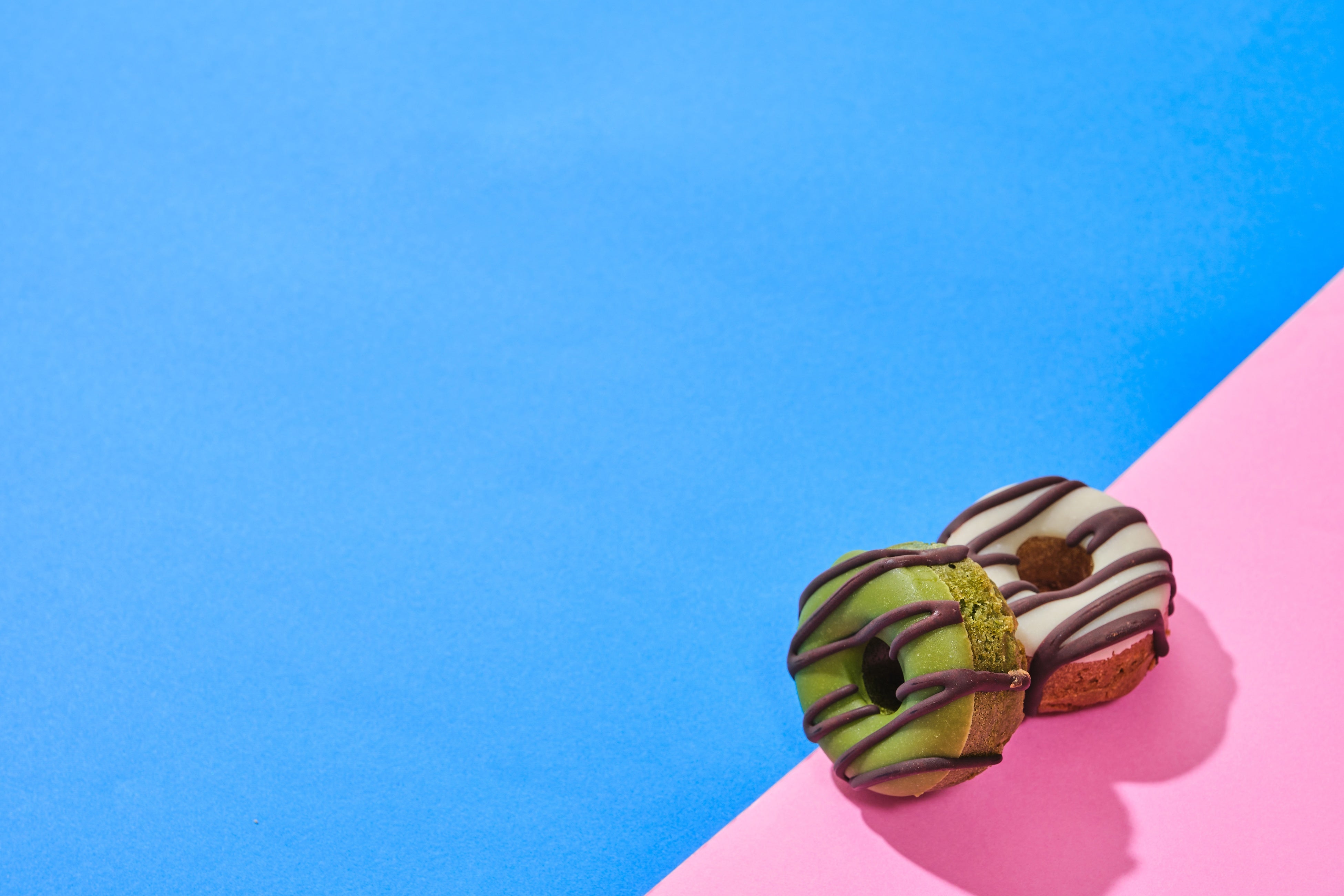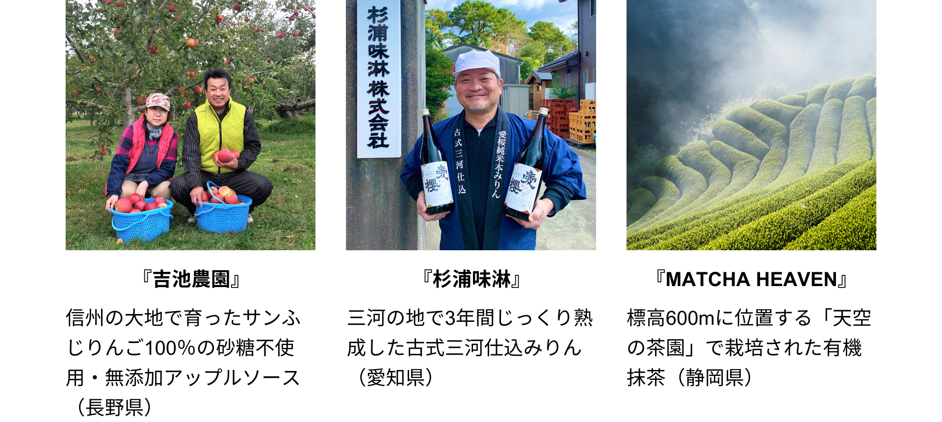 ドーナツは、揚げずに焼きと蒸しの製法で仕上げたモチモチしっとり食感。玄米粉やひよこ豆などの栄養素の高い食材を使用しています。信州の大地で育ったりんご100%のアップルソースで甘みを出し、3年間熟成したみりんの発酵パワーを豊富に含んだ栄養満点のドーナツです。抹茶は標高600mで栽培された有機のものを使用しています。