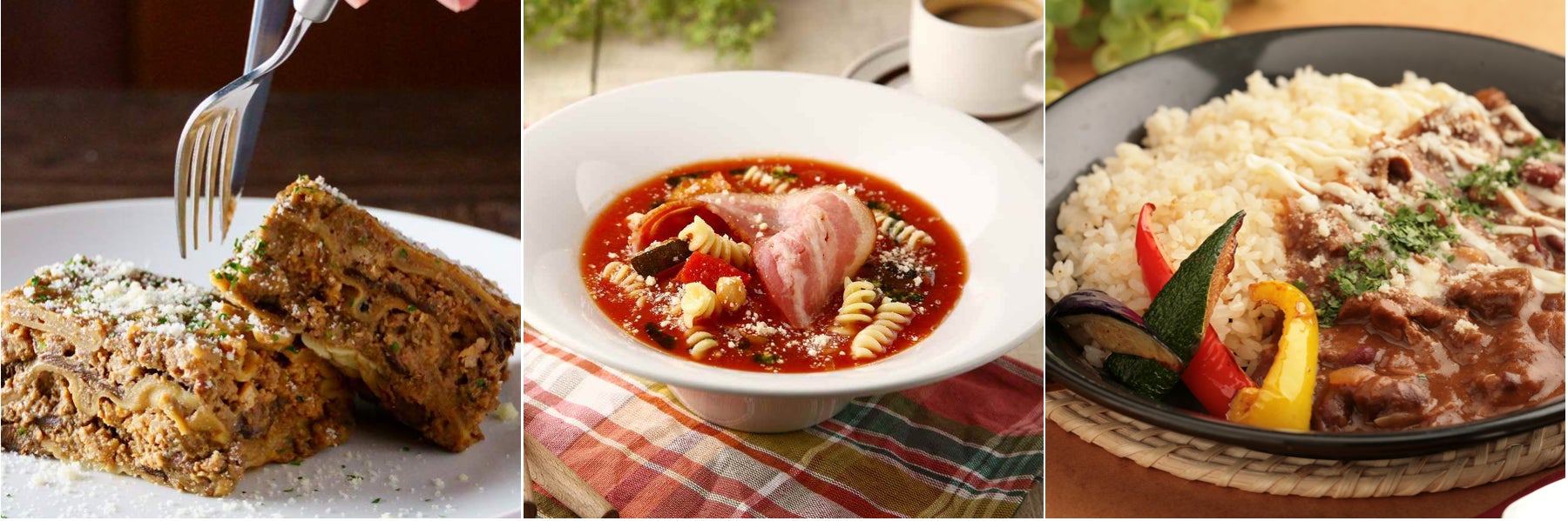 お手軽だけど本格的なアラビアータソースや⾁ビストロのラザニア、ハヤシライスソースが新登場