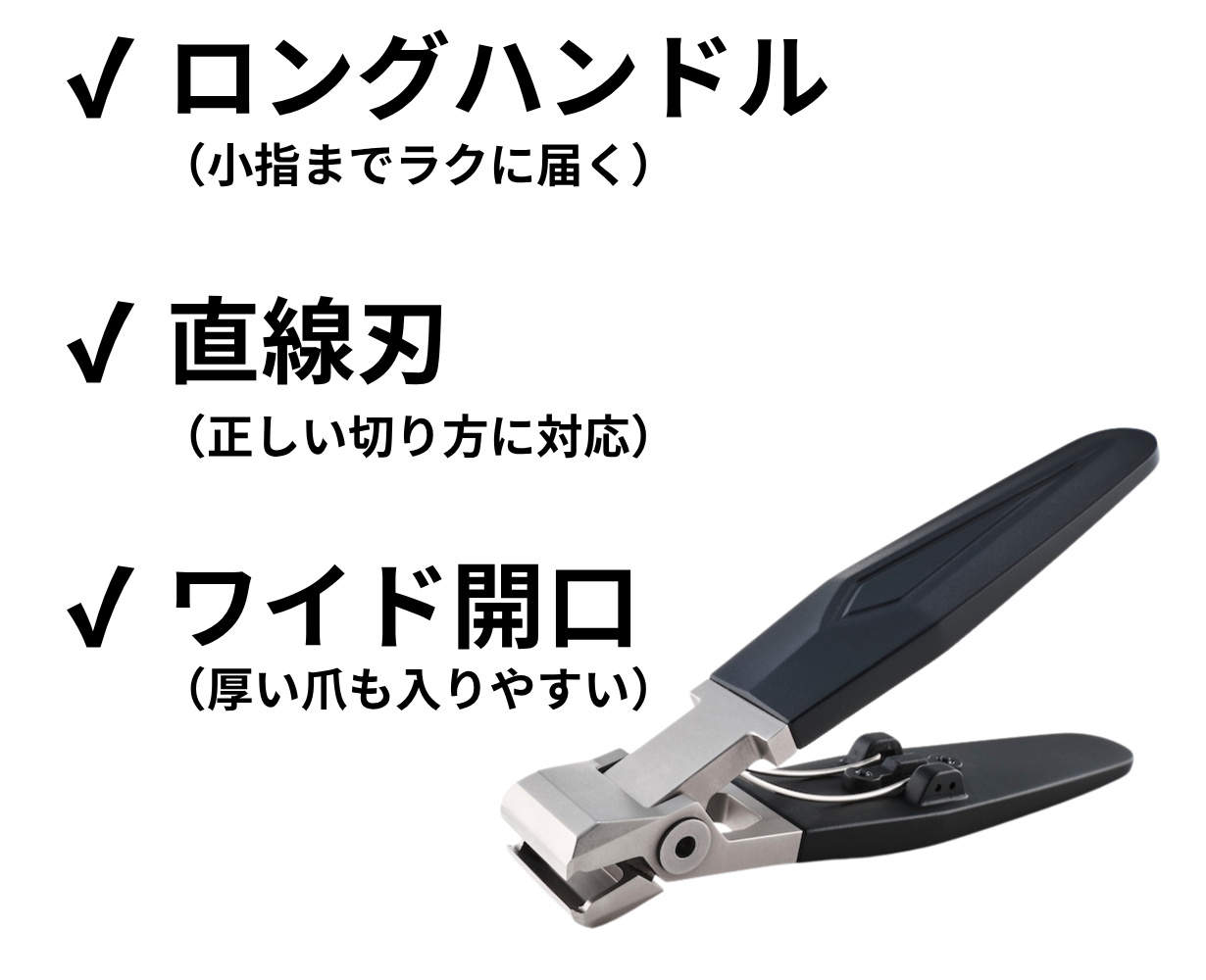 こうした課題を解決するために開発されたのが、クラウドファンディングサイト Makuake にて展開中の「足専用ロング爪切り」です。