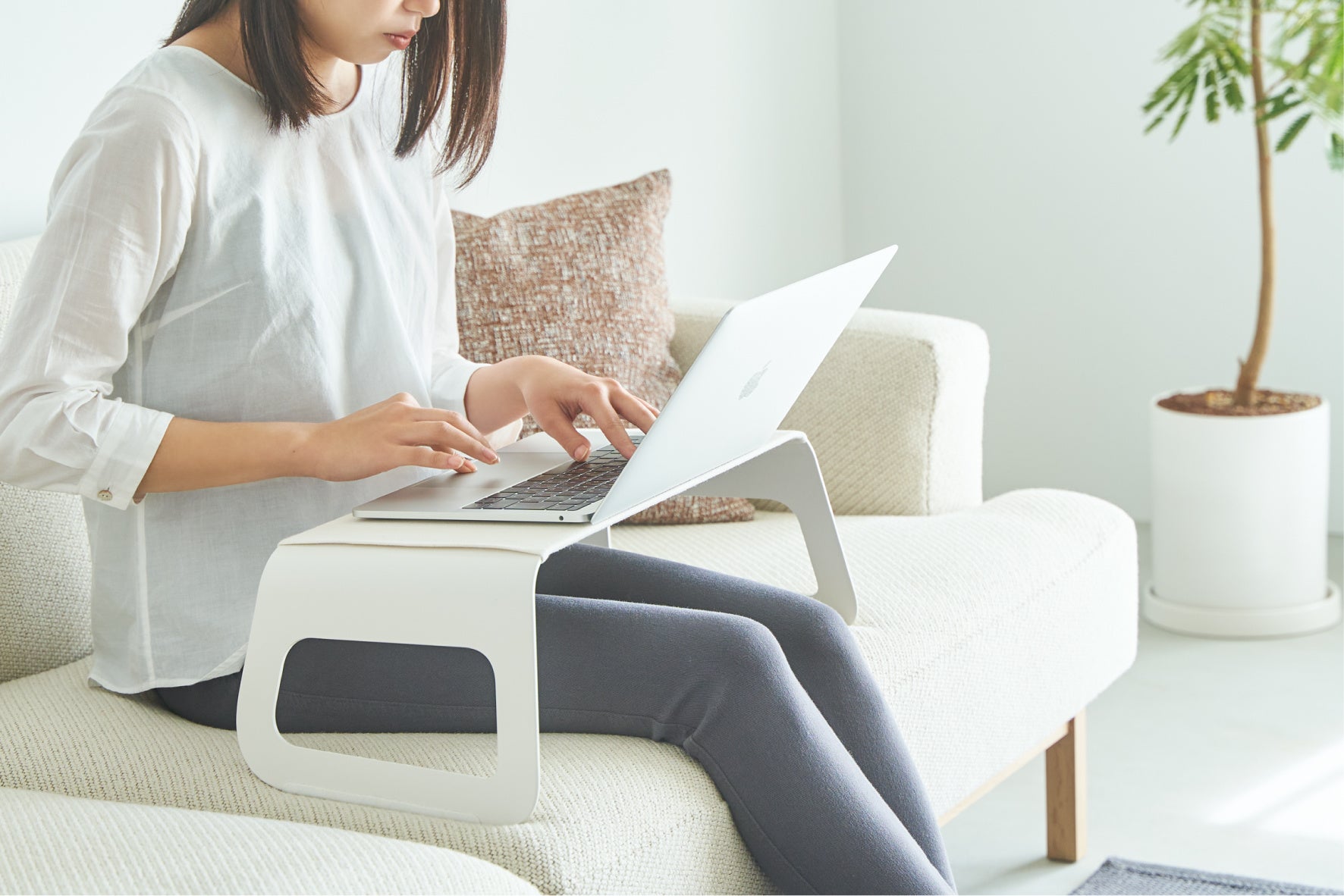 「flex」はソファーやベッド、フロアで使えるローテーブルです。曲線を用いたシンプルな形状と多彩なテーブルカバーによってインテリアに調和、天面の傾斜は作業姿勢をサポートします。軽いアルミ素材を使用しているので、場所を変えながら使うことができます。「お気に入りのソファでテレワーク」「ベッドでくつろぎながら読書」「陽だまり近くでティータイム」…さあ「flex」のある暮らしを始めませんか?