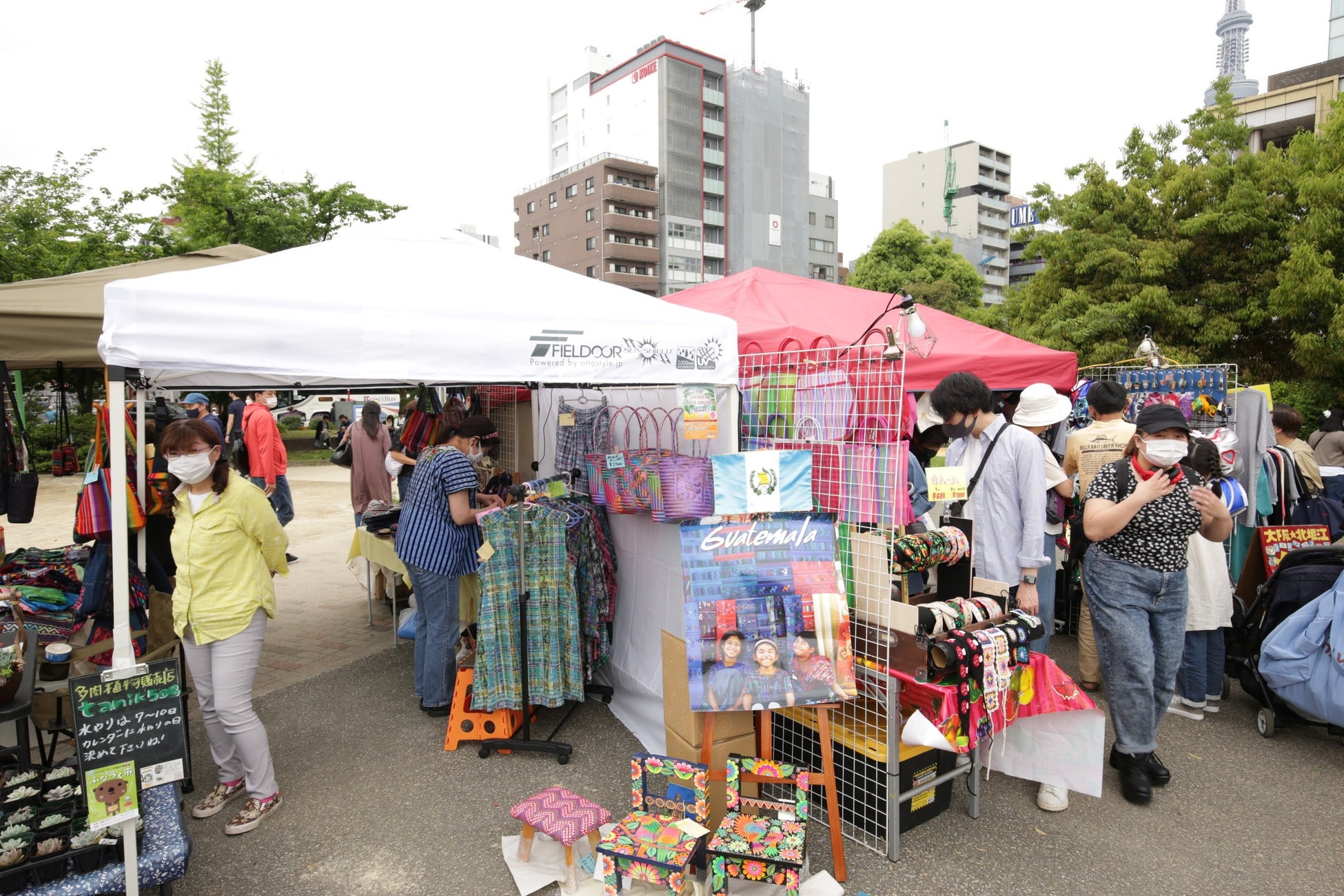 当日は、フードブースやフードトラックが20店.おしゃれな雑貨屋さんが8店、日本ラテンアメリカ友好協会による無料の子供のお面づくりブースも出店!