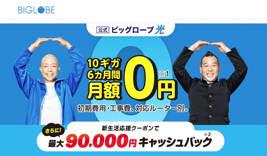 1ギガ・10ギガともに1位を獲得したのは、期間限定の「新生活応援クーポン」を発行しているビッグローブ光でした。