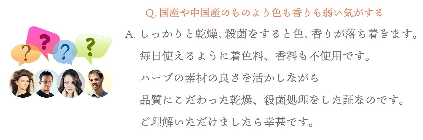 ”びっくりした。昔、よもぎ蒸しが流行った時の事を思い出しました。外国産特有の匂いなのかな?