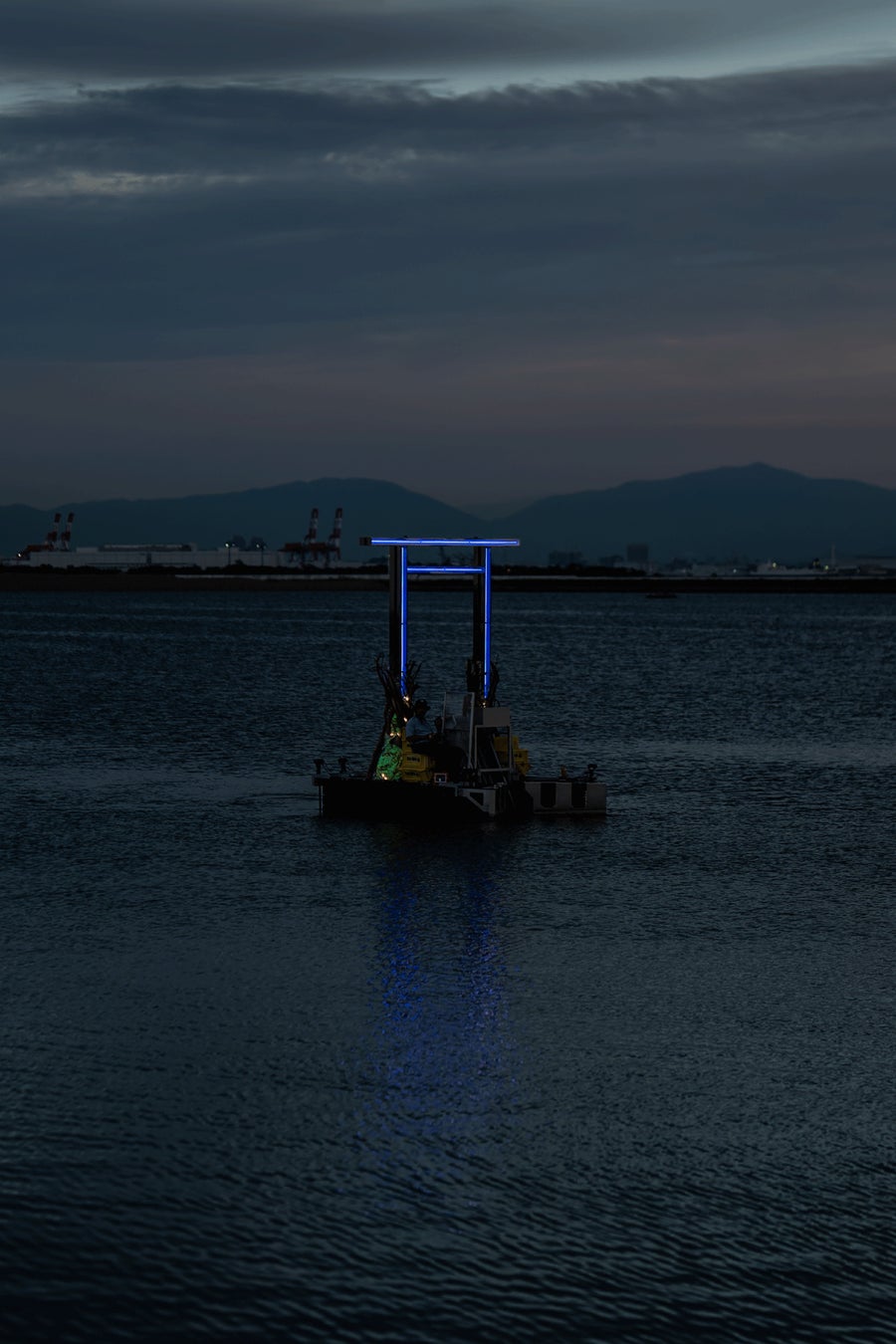本作品《鏡界》では、鳥居を鏡の質感と青の光──生命の根源である水、そして宇宙から見た地球の色で際立たせ、その存在を現代の風景のなかに再び浮かび上がらせます。宇宙と生命、現在と未来、此岸と彼岸。あらゆる「あはひ(間)」を静かに照らしながら、鳥居は“境界(きわ)”として水上に佇みます。そのフレームの果てに、あなたは何を見るのでしょうか。