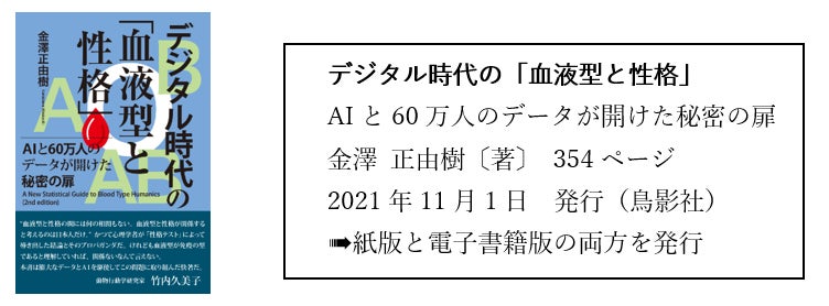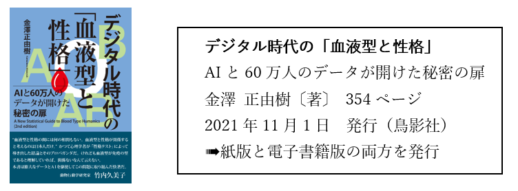 一連の研究成果は、金澤の著書『デジタル時代の「血液型と性格」』(2021年)に収録されています。