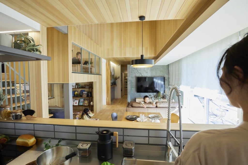 オープンで開放的なキッチンは自然と家族のコミュニケーションが生まれます。
