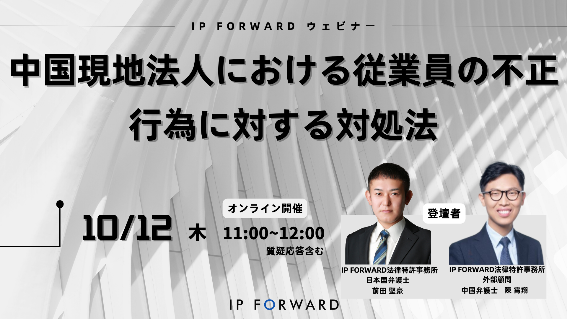 無料ウェビナー10月12日(木)「中国現地法人における従業員の不正行為に対する対処法」