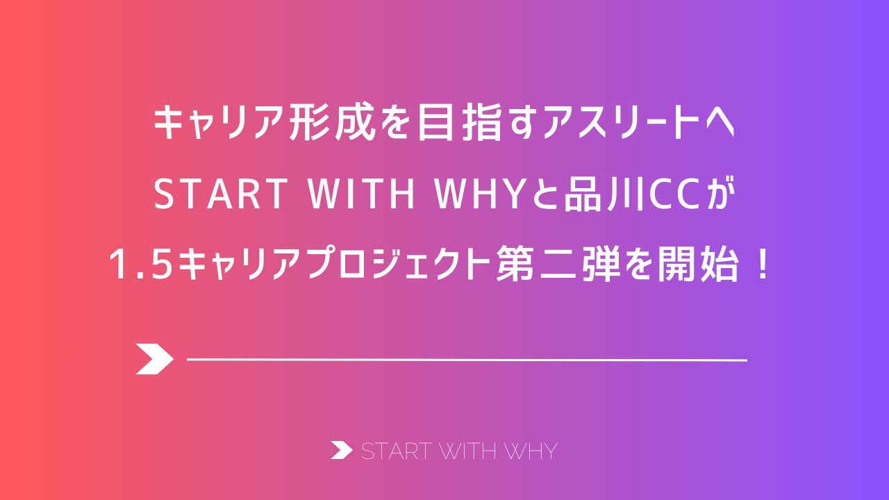 現役でプレーするアスリートの中で、引退後のキャリアについて不安を抱えているケースや、引退が決まってから今後のキャリアを模索するケースは少なくありません。そこで「多様な価値観のなかで、一人ひとりが納得度の高いキャリア形成を言語化し、実現できる社会をつくる」ことを目指しているSTART WITH WHYでは、アスリートが現役選手としてプレーに集中しながらも、ビジネス分野での経験を得ることで将来の選択肢を広げ、ビジネスキャリアの形成ができる「1.5キャリア」の取り組みを長年選手のキャリア育成を行ってきた品川CCと共にスタートいたしました。アスリートがプレーを続けながら、将来に対する漠然とした不安を解消し、プレーでもビジネスにおいても高いパフォーマンスを発揮できる世界の実現を目指します。