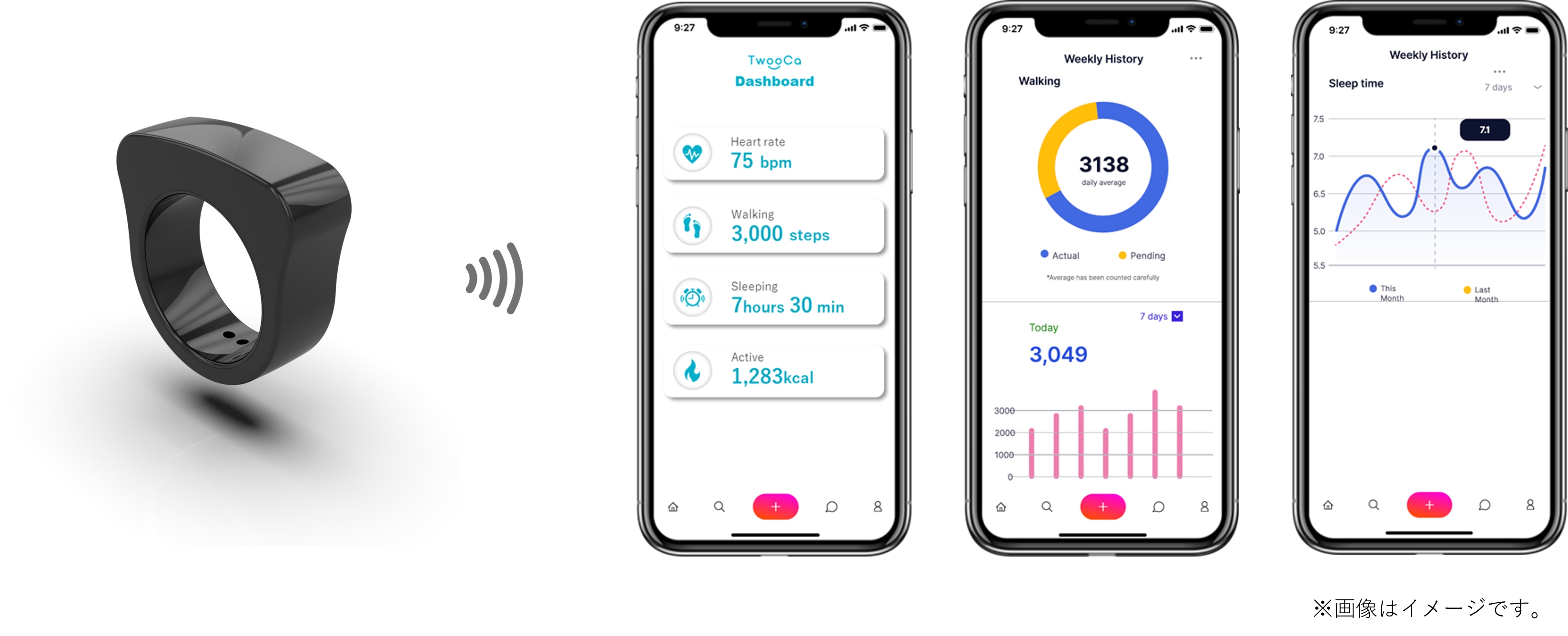 当社が運営するデジタル社員証「TwooCa」との連携により、リング一つで決済、健康管理ができるため、社員の健康管理を一緒に行うことが可能になります。「デジタル社員証×決済×健康管理」によって、企業のデジタル化だけでなく、社員の健康推進を行うことが可能になります。その他、ジムの利用者やランナーの方々へのご利用、ご高齢者の見守りリングとしてご家族がご購入頂くことも想定しています。