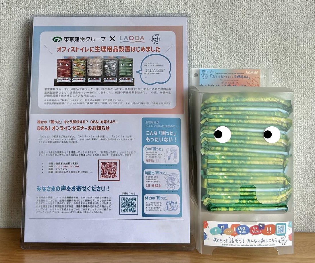 わたしの暮らし研究所株式会社(所在地:東京都中央区、代表:沢田直美)は、2021年から東京建物株式会社が管理・運営するオフィスビル6棟(総計1万人が入居)に生理用品の設置とDEI(*1)セミナーを提供してきました。今年3月に実施したテナント企業への調査結果を受け、7月から8棟(オフィス4棟・物流施設4棟)を追加し、オフィストイレへの生理用品設置をきっかけにDEIを考えるLAQDAプログラムを展開します。