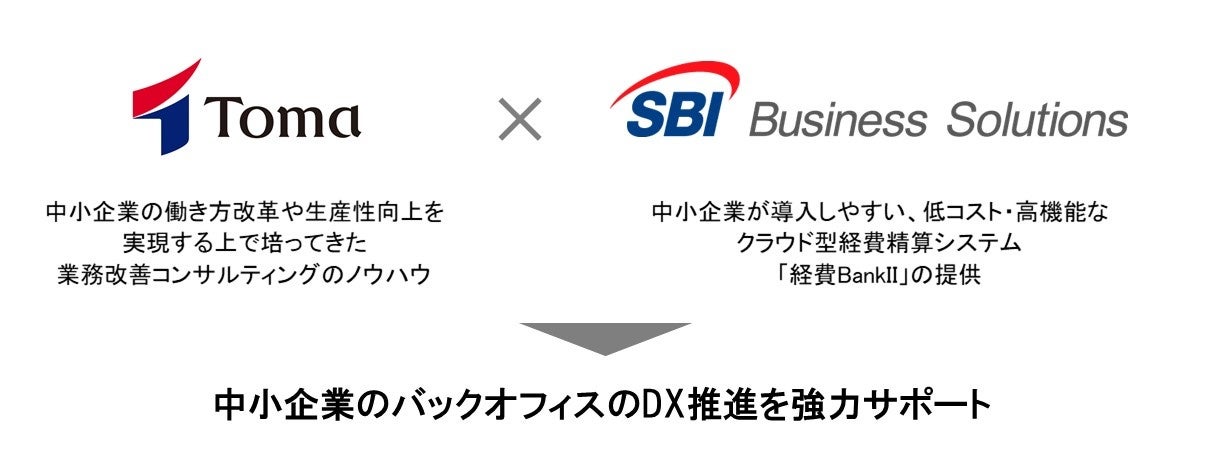 中小企業の経営を総合的に支援するTOMAコンサルタンツグループ(所在地:東京都千代田区、グループ代表:市原 和洋、以下「当社」)は、総合フィンテックソリューション企業であるSBI FinTech Solutions株式会社の子会社で、バックオフィス支援サービスを提供するSBIビジネス・ソリューションズ株式会社(本社:東京都港区、代表取締役社長:夏川 雅貴)と代理店契約を締結し、クラウド型経費精算システム「経費BankII」を活用した経理DX支援を相互協力及び連携のもと開始することとなりましたので、お知らせいたします。