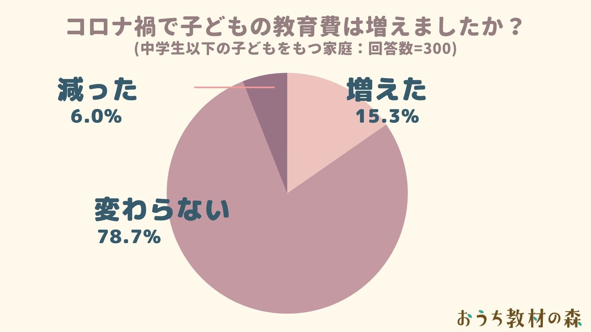 また、教育費は維持している世帯の中でも、家庭学習にかける費用は増加傾向にありました。コロナ禍で、塾や習い事が難しい状況の中、家庭学習へ投資する家庭が増えていることが示唆されます。