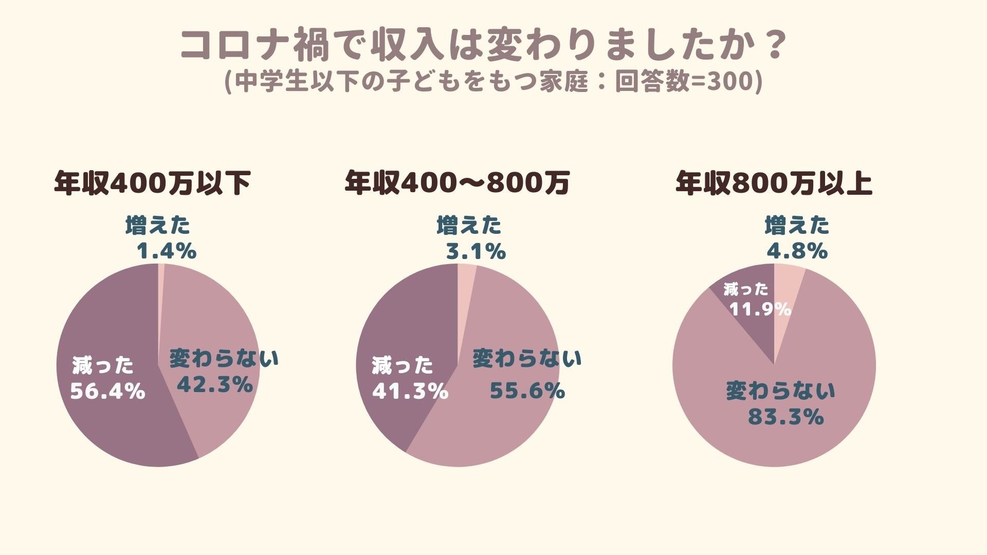今回のアンケートでコロナ禍の厳しい収入環境と教育格差、教育環境の悪化が浮き彫りになりました。