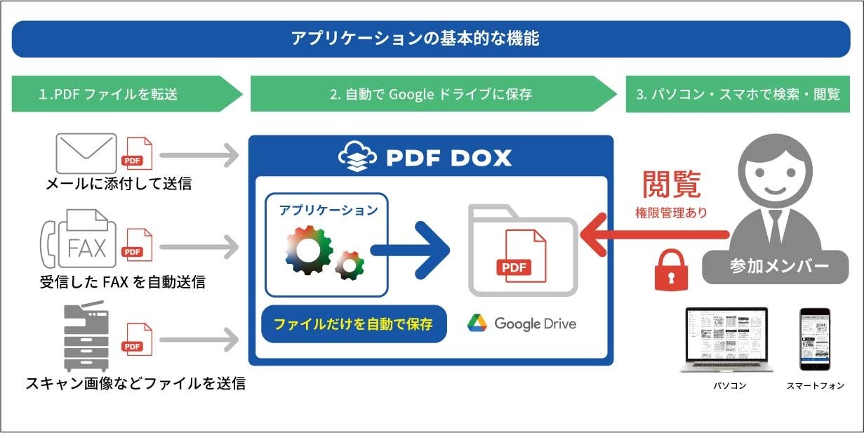 もう手動で保存する必要はありません!スキャナ、複合機、メールからの添付ファイルをGoogleドライブに自動保存・共有する『PDF DOX for Google』があなたのオフィス作業を革新します。