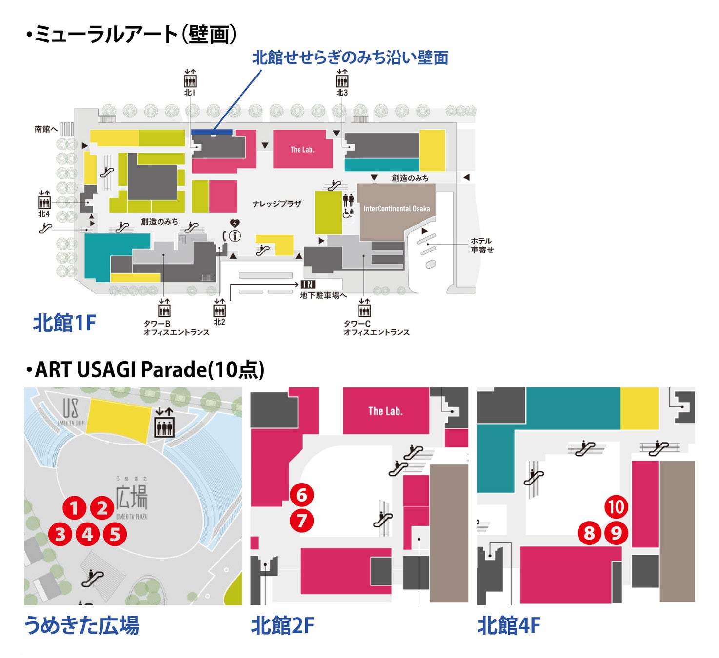展示場所:うめきた広場、北館2階・4階