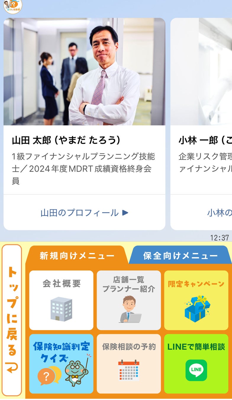 アンケート実施:「友だち追加」時にアンケートを実施し、家族構成や興味のある保険種別(生命保険、火災保険、自動車保険など)を収集