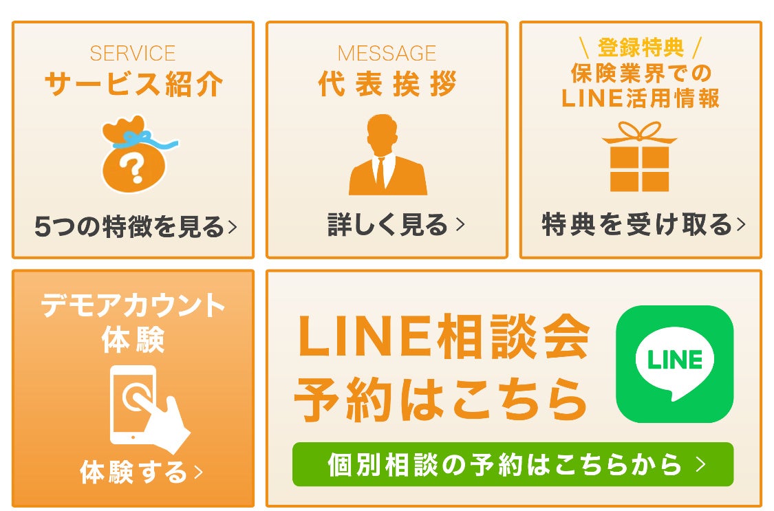【LINEマーケティングサービス】の概要から保険代理店様に提供するデモアカウントを体験できます。(登録はリンク先へ)