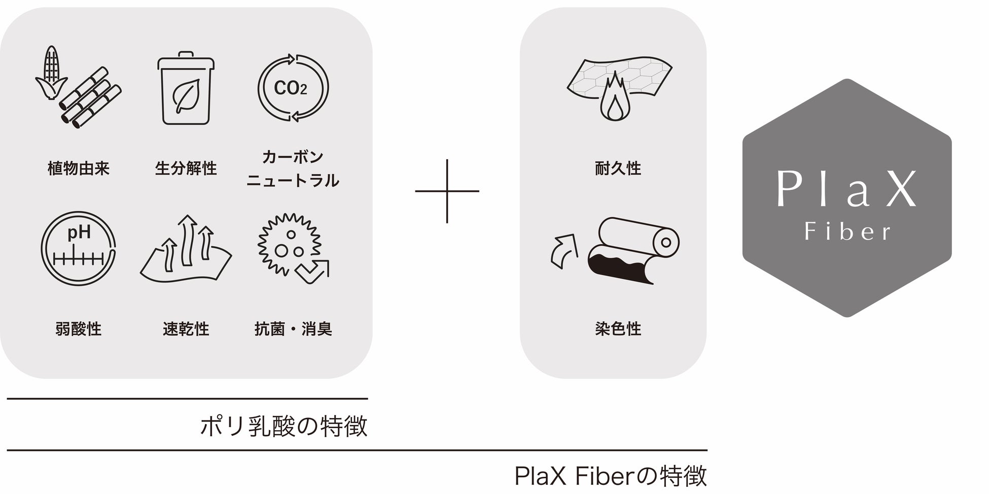 事業内容 改質ポリ乳酸コンパウンド(PlaX)およびポリ乳酸繊維(PlaX Fiber)の開発・製造・販売