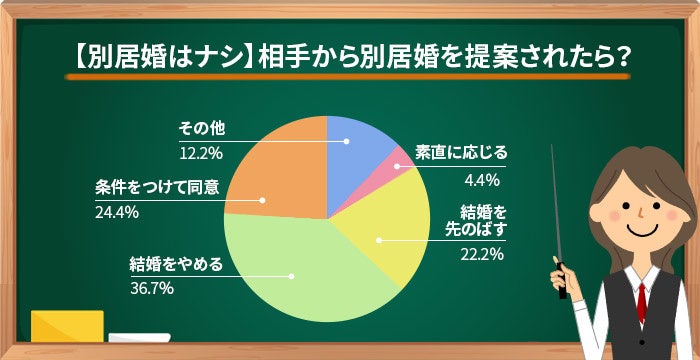 別居婚はナシと回答した人に、相手から別居婚を提案されたらどうするかと質問をしたら、以下の結果となりました。
