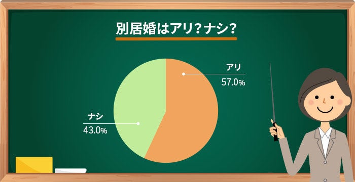 別居婚が【アリ】は57.0%、【ナシ】が43.0%と半数以上の人がアリと回答しました。