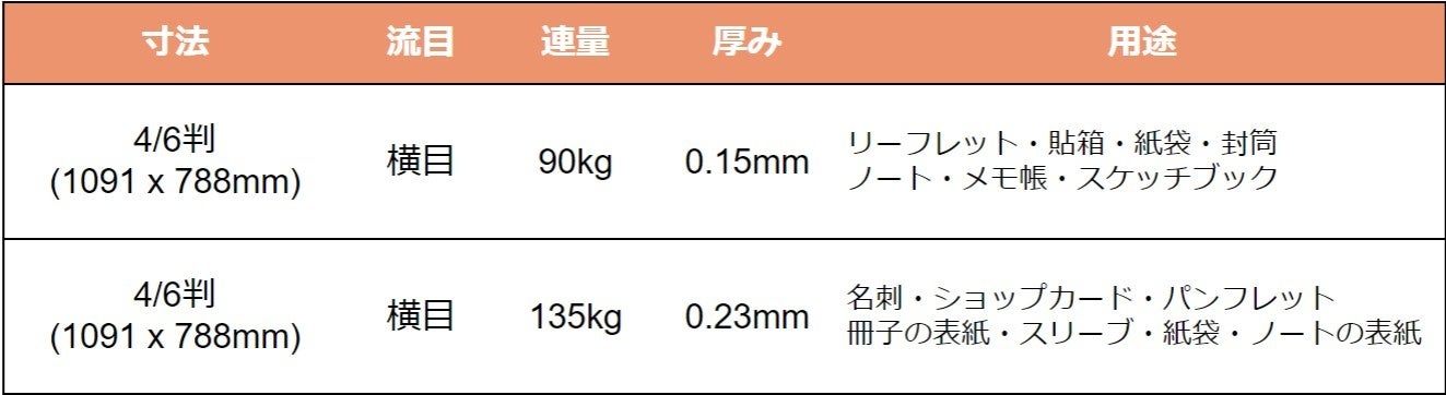 常備在庫品として以下の規格の紙を全国に即納できる体制を整えます。印刷・加工会社など広くお使いいただくことで取り組みを広げ、フードロス削減への貢献の拡大を目指します。