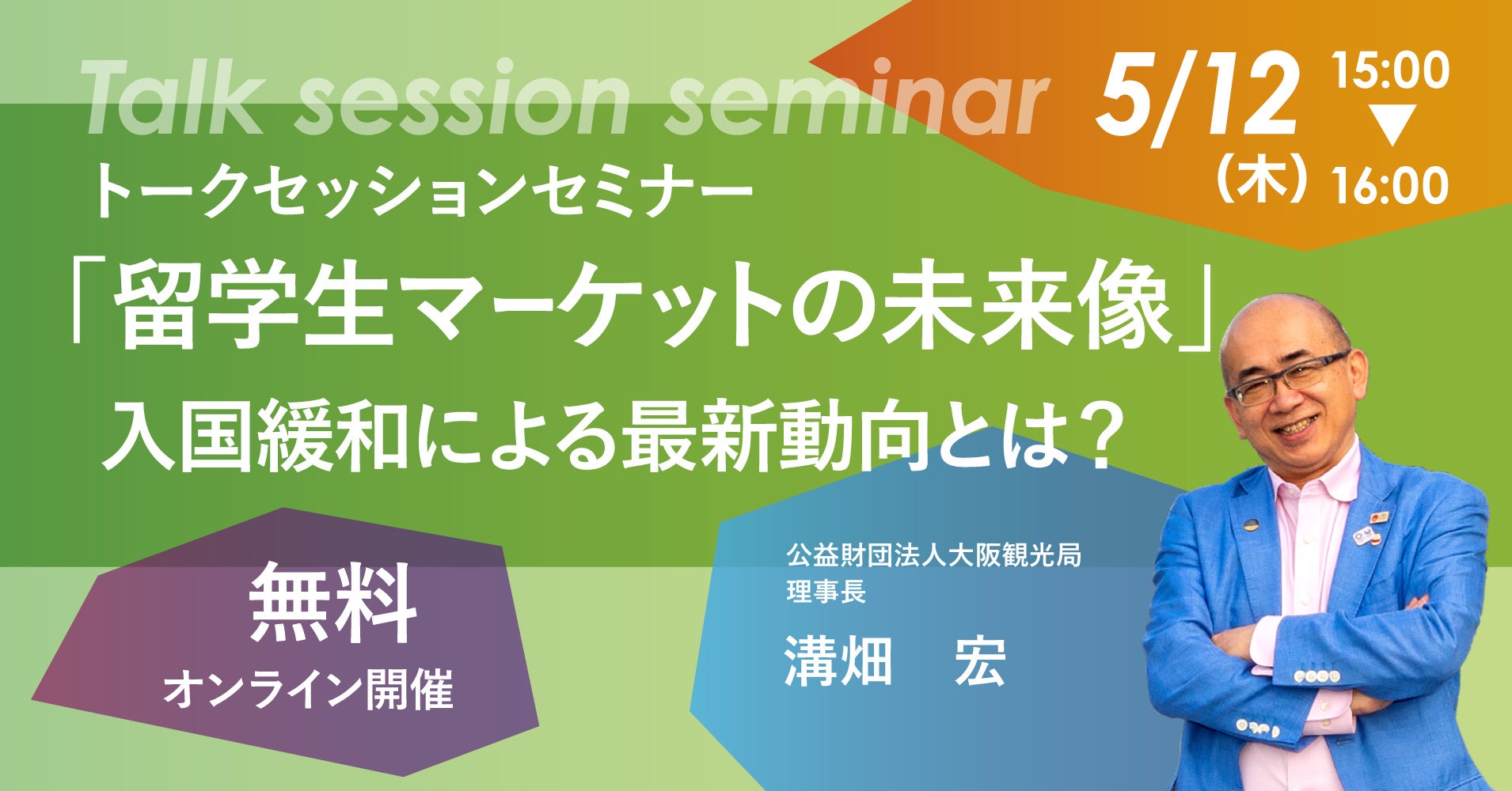 外国人留学生エキスポ実行委員会は、5月12日(木)15:00より、留学生の最新情報についてのオンライントークセッションセミナー「留学生マーケットの未来像」~入国緩和による最新動向とは?~ を開催いたします。