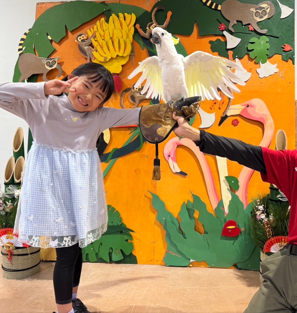 オウムの腕のせ体験と記念撮影もできます。かわいいオウムたちとHappyな年末年始をむかえよう♪