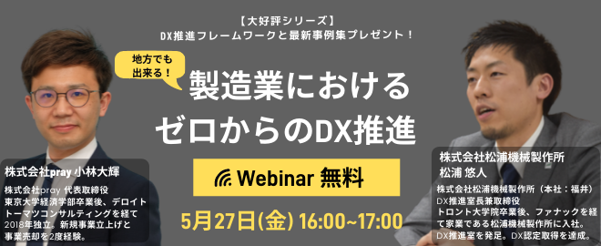 ゼロからのDX推進。製造業DX立ち上げのリアル。松浦機械製作所×pray合同セミナー開催